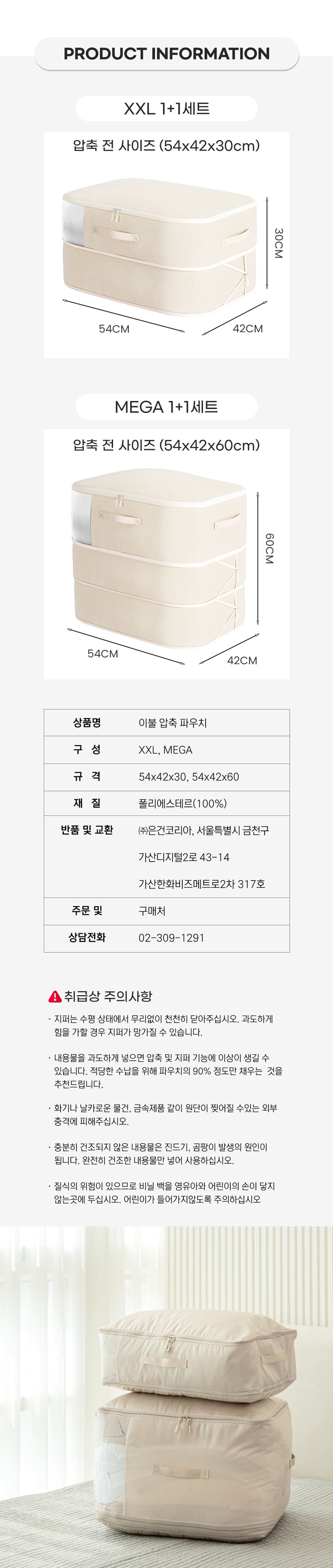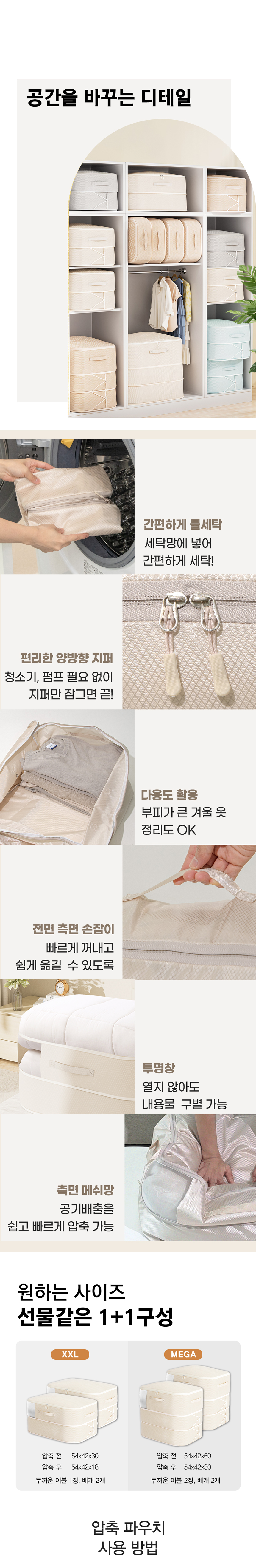 마더스홈 압축파우치 이불 의류 수납 정리함 1+1